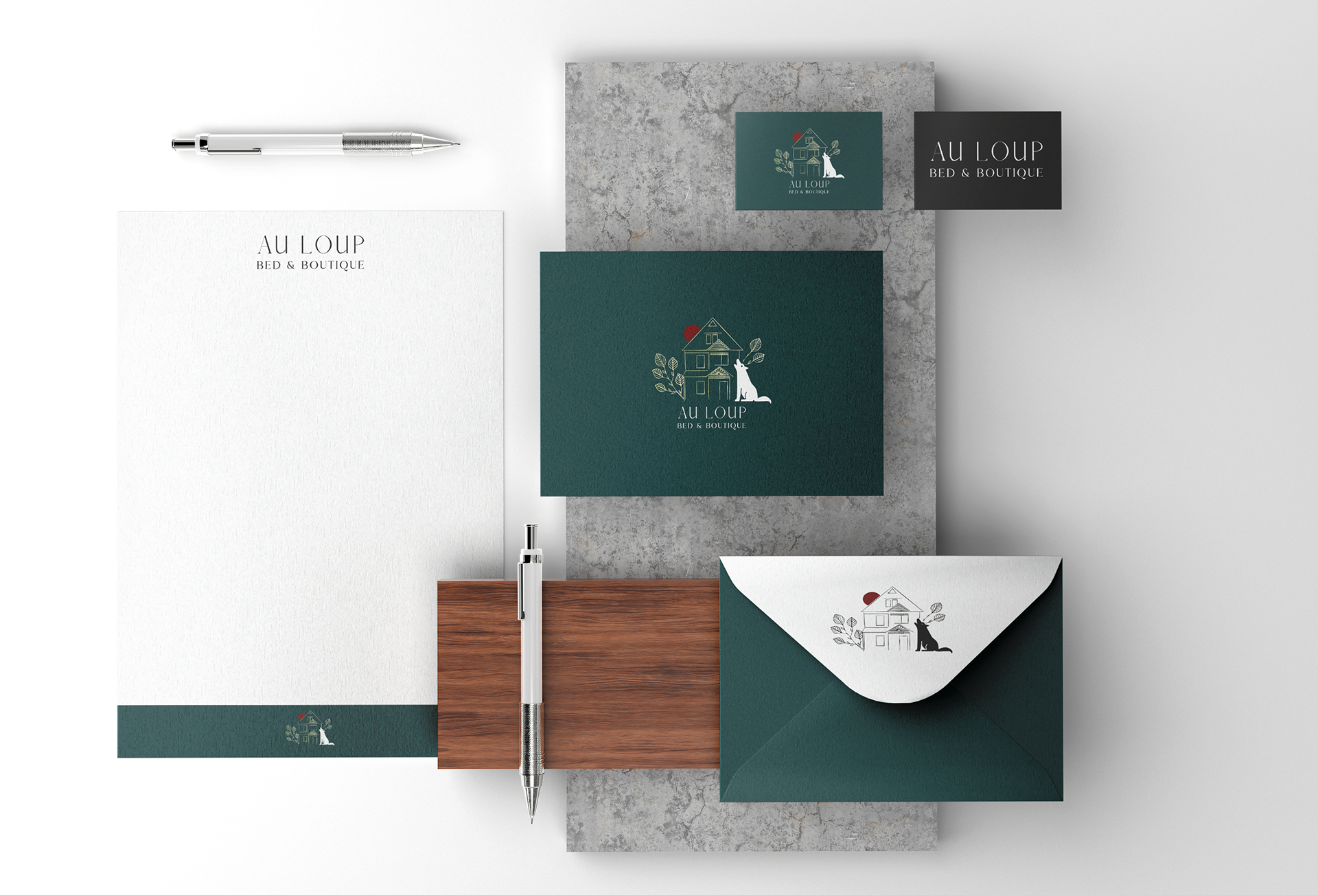 Conception de logo et d'identité visuelle pour un nouvel établissement.